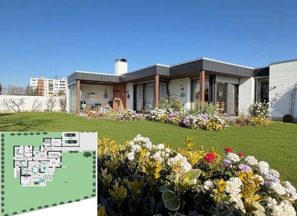 In bester Wohnlage gelegen, kann der Bungalow mit einer ebenerdigen, barrierefreien Wohnfläche von ca. 174 m², aufgeteilt in ca. 6-7 Zimmer, aufwarten. Zudem steht eine vergleichbare Nutzfläche im Untergeschoss/Keller zur Verfügung, welche neben diversen Funktionsräumen, ausgebaute Praxis-, Büro- oder auch Wohnräume besitzt. Auf dem üppigen Grundstück mit ca. 1.277 m², befindet sich auch die Doppelgarage.