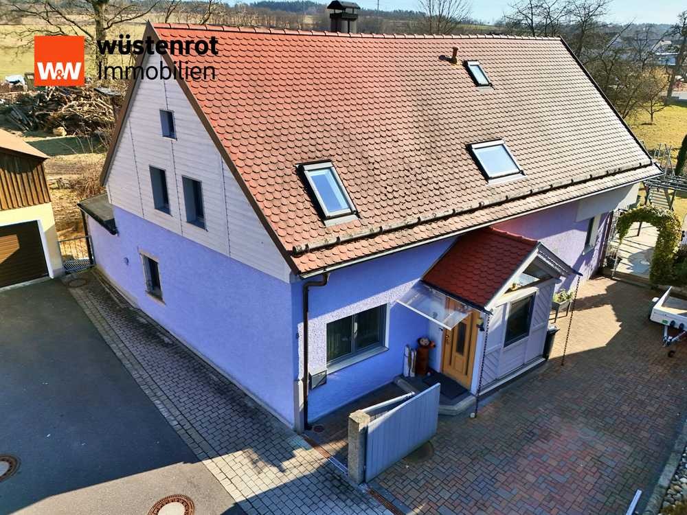 Das Objekt liegt mitten in Schirmitz, etwas von der Hauptstraße zurückgesetzt. Auf der Westseite dämpfen die angrenzenden Häuser den Straßenlärm, auf der Ostseite ist der Blick frei auf die Natur.