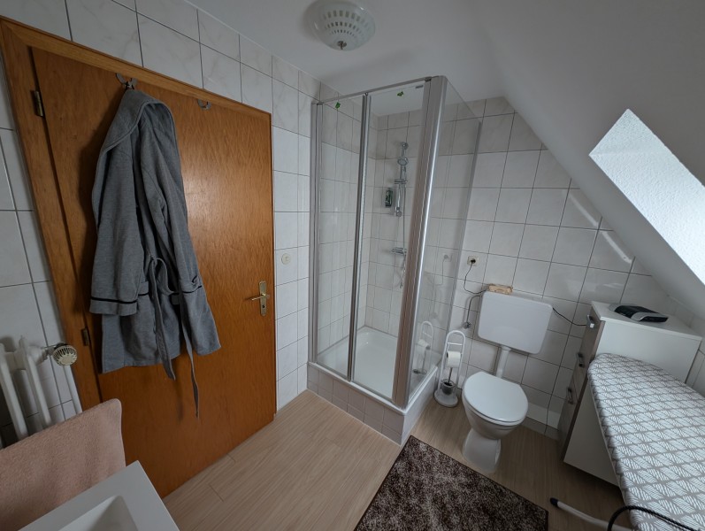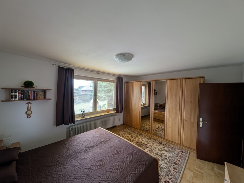 Im Obergeschoss befinden sich ein großzügiges Schlafzimmer mit Balkon, ein weiteres kleines Zimmer, ein Duschbad sowie 50 m² Ausbaureserve für zusätzliche Wohnfläche oder eine separate Wohnung.