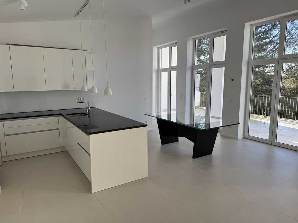 Die sehr helle und großzügige Wohnung ist barrierefrei zugänglich und verfügt über eine fast 40 qm große nach Westen ausgerichtete, teilüberdachte Dachterrasse. Das Pultdach mit bis zu 3,6 m Raumhöhe bietet verbunden mit den 3m hohen Fensterelementen ein spektakuläres Raumgefühl im Wohn-Ess-Bereich. Zur Wohnung gehören ein TG-Einzelstellplatz, ein eigener Platz für Waschmaschine und Trockner sowie ein großer Abstellraum im UG.