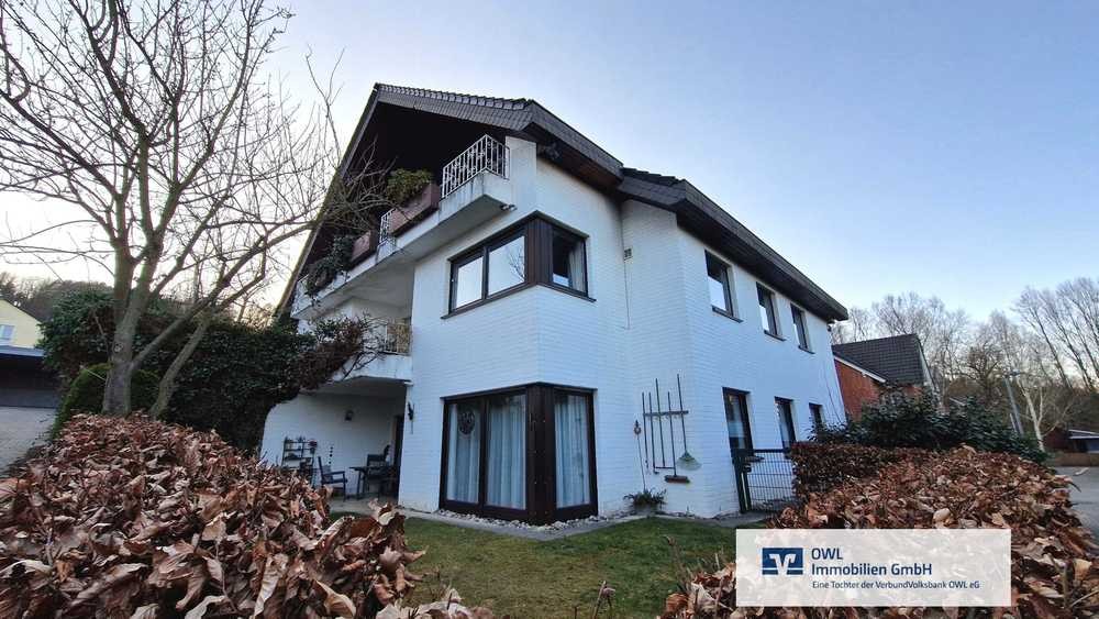 In guter Wohnlage, nahe des St. Ansgar Krankenhauses, von Höxter steht dieses, ca. 1984 erbaute Zweifamilienhaus auf einem ca. 1.156 m² großen Grundstück. Die Immobilie verfügt über zwei getrennte Wohneinheiten. In dem Obergeschoss finden Sie sehr großzügig geschnittene Räumlichkeiten mit einer Wohnfläche von ca. 144 m². Dort erwarten Sie ein großer Wohn- und Essbereich mit einem Kamin und Zugang zu einer Pergola, ein Schlafzimmer, ebenfalls mit einer Terrassentür und großen, bodentiefen Fenstern, ein Badezimmer mit zwei Waschbecken und Dusche, ein Gäste-WC mit Dusche, eine Küche mit Essbereich und Ausgang auf den Freisitz, ein Hauswirtschaftsraum, ein Durchgangszimmer mit Einbauschränken, ein Arbeitszimmer sowie ein großer Flurbereich mit Garderobe. Über das Treppenhaus gelangen Sie in das Dachgeschoss, welches zuletzt vermietet war. Dort finden Sie auf ca. 84 m² Wohnfläche eine Küche, ein Bad mit Dusche, ein Bad mit Badewanne und zwei große Schlafzimmer mit Glasfronten sowie Ausgängen auf den überdachten Balkon. Von diesem Balkon aus haben Sie eine wunderschöne Aussicht in das Weserbergland. Auf dieser Etage befinden sich zudem zwei weiteren Räumen, die nicht in der offiziellen Wohnflächenberechnung enthalten sind. Genügend Lagerfläche finden Sie im Spitzboden des Hauses.