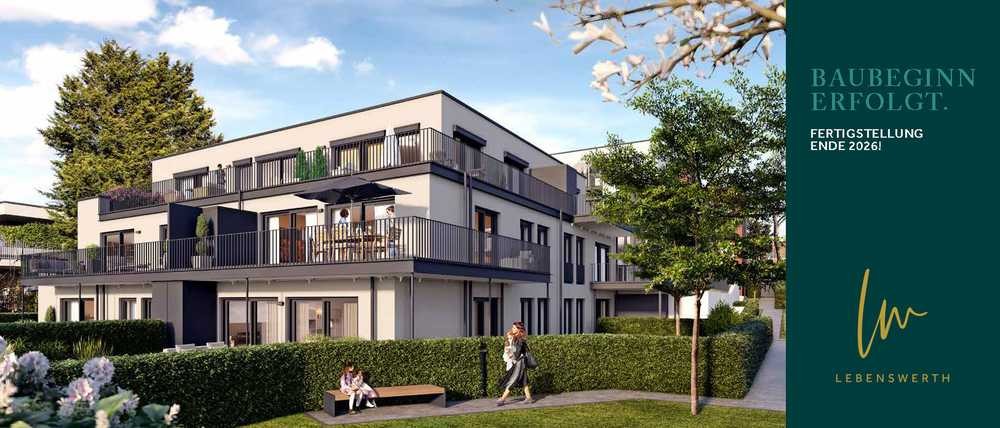 Die Balkone, Terrassen und Gärten sind überwiegend nach Westen ausgerichtet und bieten viel Licht sowie einen schönen Ausblick ins Grüne. Die oberen Stockwerke bieten zudem einen beeindruckenden Blick auf die Rheinauen und den Rhein. Ganz schön Lebenswerth!