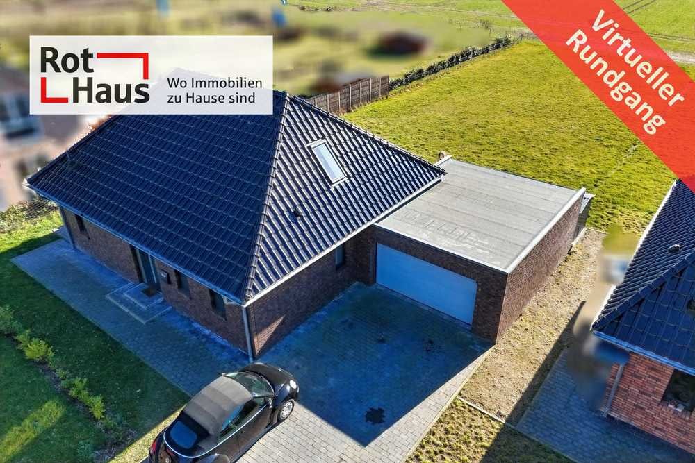Dieser moderne Bungalow aus dem Jahr 2023 bietet höchsten Wohnkomfort auf einer Ebene. Die effiziente Gasheizung und die Fußbodenheizung im gesamten Erdgeschoss sorgen für ein angenehmes Raumklima.