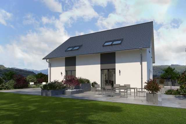 Klein, aber fein, so kommt unser Doppelhaus 07 daher. Unter dem eleganten Satteldach befinden sich zwei Wohneinheiten – und diese verteilen sich auf zwei Ebenen. Sie bieten ausreichend Raum und Komfort für Singles, Paare oder Kleinfamilien. Das Erdgeschoss prägt ein großzügig gestalteter Wohn-Ess-Bereich mit integrierter Küchenzeile. Aus der Küche hat man direkten Zugang zu einem großen und praktischen Hauswirtschaftsraum, der zahlreiche Lagermöglichkeiten bietet. Ein Gäste-WC und eine Garderobe befinden sich ebenfalls auf dieser Etage. Die halbgewendelte Treppe im Dielenbereich unterteilt das Erdgeschoss auf elegante Weise in Nutz- und Wohnbereich. Im Dachgeschoss stehen den künftigen Eigenheimbesitzern rund 50 m2 Wohnfläche zur Verfügung – und die lassen dank ihrer durchdachten Raumaufteilung keine Wünsche offen. Das Elternschlafzimmer sowie das Kinderzimmer wirken durch die Dachschrägen besonders heimelig und bieten dennoch ausreichend Raum zum Stellen von Möbeln, zum Erholen, Entspannen und Spielen. Ebenfalls auf dieser Ebene: ein großes Tageslichtbad mit Wanne, Dusche und WC. Hier lautet die Devise: maximaler Wohnkomfort auf kleinem Raum.