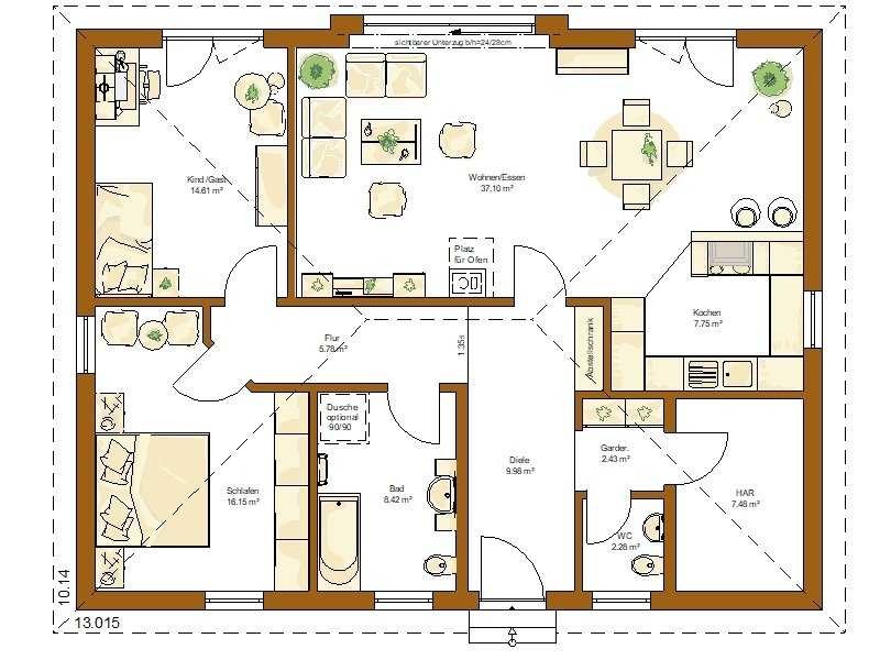 Dieser Bungalow ist ein architektonischer Klassiker und begeistert durch klare, puristische Züge. Optisch aufgewertet wird er durch deinen ansprechenden Rechteckerker mit großer Verglasung und direktem Zugang in den Garten. 45 m² Wohnbereich, offen und großzügig gehalten, sind mehr als großzügig. Auch ein Kinder- oder Gästezimmer haben ihren Platz im Raumkonzept gefunden. Wie auch immer sich die Familienkonstellation entwickelt - Sie bleiben flexibel.