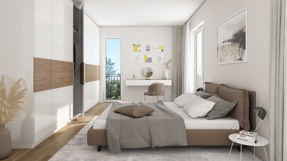 Die Wohnung überzeugt durch ihr modernes Design und hochwertige Ausstattung. Große Fenster sorgen für lichtdurchflutete Räume und eine angenehme Wohnatmosphäre. Das Hauptbad ist als luxuriöses Badezimmer en suite gestaltet und wird durch ein separates Dusch-WC ergänzt. Ein weiteres Zimmer kann als Kinderzimmer, Büro oder Gästezimmer genutzt werden. Der offen gestaltete Küchenbereich mit integriertem Abstellraum und zusätzlichen Schrankflächen im Flur rundet das durchdachte Raumkonzept ab.