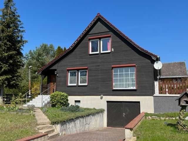 Die Immobilie wurde ca. 1980 erbaut. Die Wohnfläche von ca. 90 m² verteilt sich auf zwei Etagen. Ein kleiner Windfang geleitet Sie in das Erdgeschoss. Hier befinden sich das großzügige Wohnzimmer, zwei weitere Zimmer, die Küche sowie das Badezimmer mit einer Badewanne.Vom Wohnzimmer aus gelangen Sie direkt auf die sonnige Terrasse. Im Obergeschoss befinden sich zwei weitere Schlafzimmer. Das Haus ist voll unterkellert und verfügt über Abstellmöglichkeiten, eine Garage und eine Ölheizung, die 1997 installiert wurde. Das Dach wurde im Jahr 1998 mit Tonziegeln neu eingedeckt. Im gleichen Jahr wurde das Haus mit isolierverglasten Fenstern und einer neuen Haustür ausgestattet.