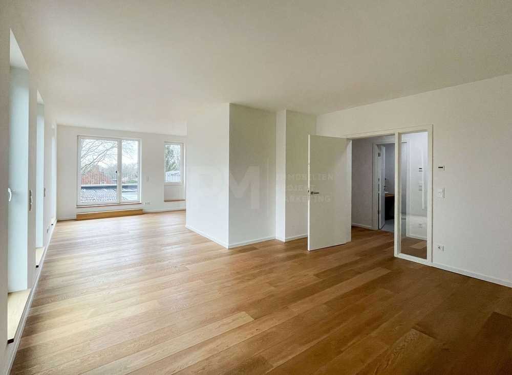 Entdecken Sie das Privileg, zwischen städtischer Nähe und ländlicher Ruhe zu leben. Inmitten grüner Straßen und nur einen Steinwurf von der Elbe entfernt, erhebt sich dieses beeindruckende Neubau-Penthouse. Die architektonische Strenge des Gebäudes, akzentuiert durch das helle Mauerwerk verleiht ihm eine ausdrucksstarke und zeitgemäße Erscheinung. Durch die kreative Verwendung von Ziegeln erhält die Fassade eine robuste, traditionelle Note, die an den nordischen Charme erinnert - ein echtes Sinnbild hanseatischer Eleganz.
