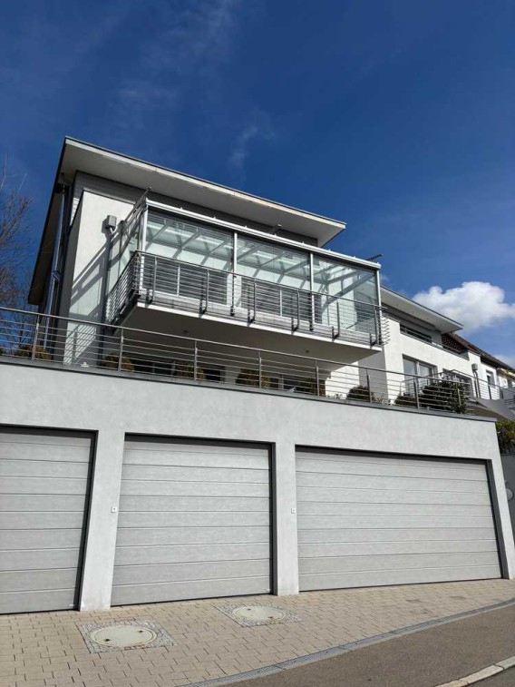 Bei dieser einzigartigen Immobilie handelt es sich um eine Maisonette-Wohnung, die durch eine luxuriöse Innenausstattung und beeindruckender Architektur besticht und ab sofort zum Kauf steht. Zwei Badezimmer und ein separates Gäste-WC zählen neben 4 1/2 exklusiven Zimmern zu der Maisonette Whg. .Die Wohnung ist bequem über einen Fahrstuhl zu erreichen und erstreckt sich über das 2. Obergeschoss und Dachgeschoss. Besonders hervorzuheben ist, die große Balkonterrasse mit Panoramaglas umbaut, im Anschluss an das Wohn- und Kaminzimmer, mit phantastischen Blick über Sindelfingen. Auch das große Schlafzimmer im Dachgeschoß mit eigener Balkonterrasse bietet einen weiteren atemberaubenden Ausblick bis zum Schönbuch.
