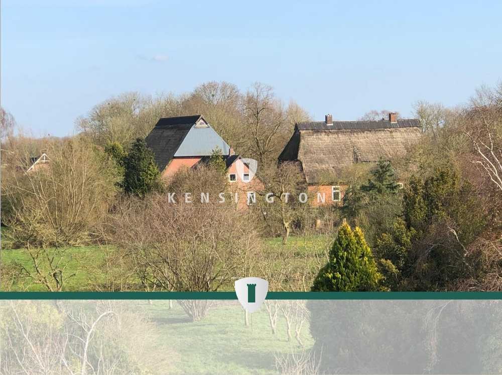 Ehemaliges Gutshaus (bereits entkernt und mit Baugenehmigung für 2 Wohnungen). Reetdach, große Scheune mit reichlich Platz für Oldtimer, Boot, Wohnmobil ...