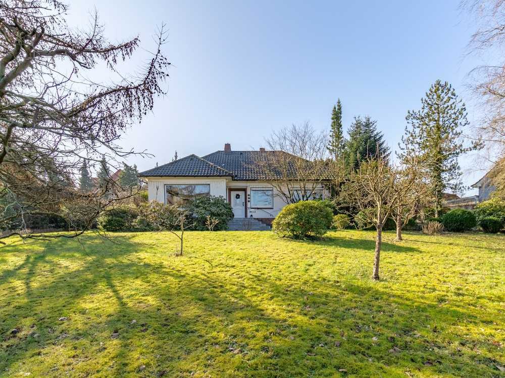 Dieser massiv gebaute Bungalow wurde im Jahr 1955 auf einem 2.217 m² großen Eigenlandgrundstück in leichter Hanglage errichtet. 1986 erfolgte der Ausbau des Dachgeschosses, wodurch zusätzlicher Wohnraum in Form eines Schlafzimmers und eines Badezimmers geschaffen wurde. Mit einer Gesamtwohn- und Nutzfläche von ca. 260 m² bietet diese Immobilie vielfältige Nutzungsmöglichkeiten. Das Erdgeschoss umfasst rund 100 m² und überzeugt mit einem großzügigen Wohn- und Essbereich von ca. 40 m², ausgestattet mit einem gemütlichen Kaminofen. Direkt angrenzend lädt eine sonnige Terrasse mit ca. 30 m² zum Entspannen ein. Zwei weitere Zimmer, die sich ideal als Schlaf-, Gäste- oder Kinderzimmer eignen, eine Küche sowie ein Duschbad komplettieren diese Ebene. Das Dachgeschoss verfügt über ein ca. 20 m² großes Zimmer, ein Wannenbad sowie einen Flur. Ein geräumiger Bodenraum bietet zusätzliches Ausbaupotenzial. Der Vollkeller bietet nicht nur praktischen Stauraum, sondern auch zwei wohnlich nutzbare Räume mit jeweils ca. 20 m² sowie ein separates WC. Durch den direkten Zugang zur westlichen Kellerseite und den ausgezeichneten Lichteinfall eignet sich dieser Bereich ideal als Büro oder weiteren Wohnraum. Ergänzend befinden sich im Keller ein Vorratsraum, ein Geräteraum, eine integrierte Garage sowie die Heizungsanlage. Das Haus präsentiert sich mit einer klassischen weißen Putzfassade und einem mit langlebigen Betonpfannen eingedeckten Satteldach. Die isolierverglasten Fenster sorgen für eine angenehme Wohnatmosphäre. Das weitläufige Grundstück ist liebevoll gärtnerisch gestaltet und vollständig eingefriedet, wodurch eine hohe Privatsphäre gewährleistet ist. Ein besonderes Highlight ist der große Gartenteich im hinteren Bereich des Grundstücks, der derzeit auch als Schwimmteich genutzt wird. Nebengebäude bieten zudem flexible Nutzungsmöglichkeiten als Garage oder Abstellfläche für berufliche und private Zwecke. Die Einfahrt kann durch ein markantes Holztor sicher verschlossen werden. Diese Immobilie bietet ein ideales Wohnambiente für Naturliebhaber, Familien oder Selbstständige, die Wohnen und Arbeiten kombinieren möchten. Gemäß dem Bebauungsplan bietet das Grundstück verschiedene Entwicklungsmöglichkeiten. Neben dem bestehenden Bestand ist grundsätzlich auch die Errichtung eines oder mehrerer Neubauten denkbar, abhängig von den individuellen Planungen und behördlichen Genehmigungen. Haben wir Ihr Interesse geweckt? Gerne stellen wir Ihnen diese Immobilie im Rahmen einer persönlichen Besichtigung vor.