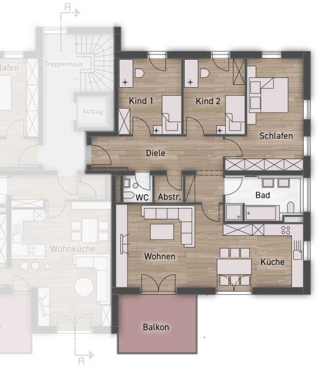 top geschnittene 4-Zimmer-Wohnung mit 116 m² Wohnfläche.