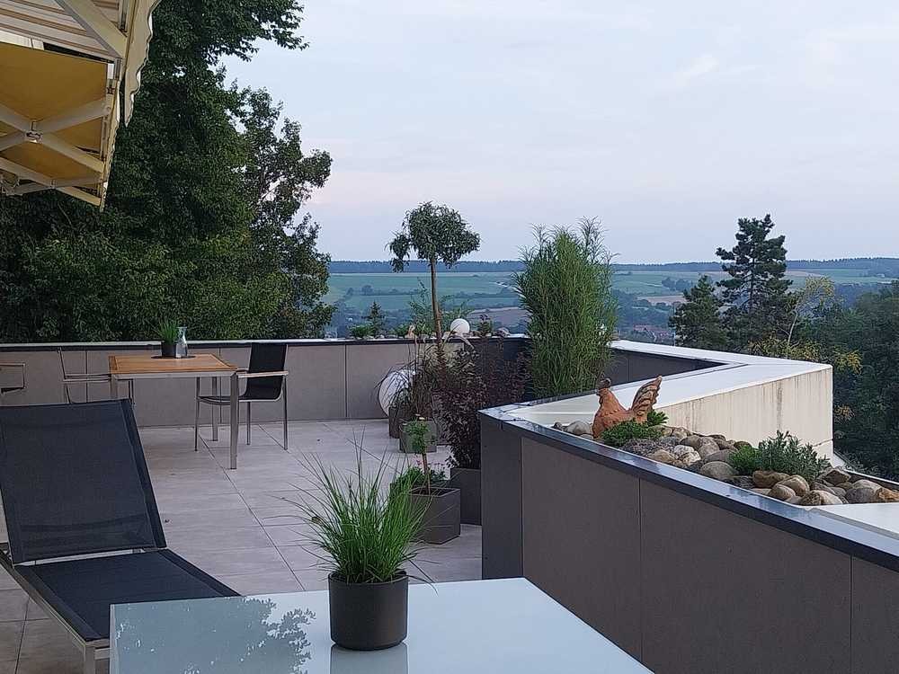 Ein besonderes Highlight ist die große, sonnenverwöhnte Terrasse mit Weitblick über die Dächer von Sigmaringen. Dieser unverbaubare Blick lädt zu entspannten Stunden ein. Genießen Sie diese idyllische Atmosphäre.