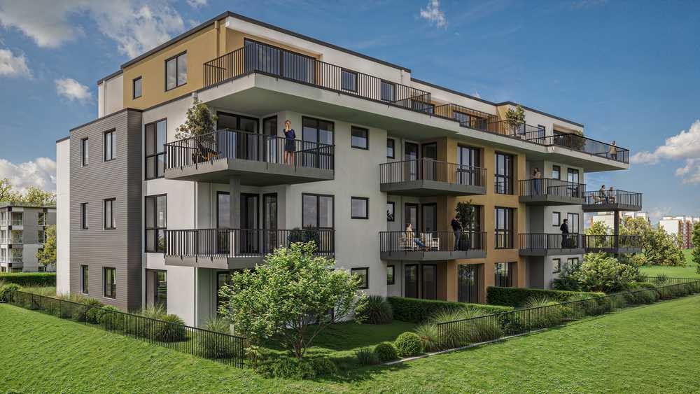 Das Gebäude wird in solider Mauerwerksbauweise errichtet und erfüllt alle Anforderungen gemäß GEG 2024. Fundamente und Bodenplatte in Beton. Die Außenwände sowie die tragenden Innenwände werden aus Kalksandstein bzw. Stahlbeton hergestellt. Die Geschossdecken bestehen aus Stahlbeton. Die Geschosstreppen sind ebenfalls aus Stahlbeton gefertigt. Sie werden mit polierten Granitstufen belegt. Auf das Außenmauerwerk wird ein Wärmedämmverbundsystem (WDVS) aufgebracht.