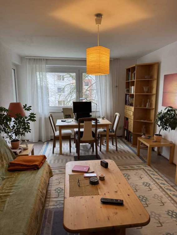 Der Balkon lädt zum Verweilen ein, das helle Wohnzimmer schafft eine angenehme Atmosphäre und das separate Schlafzimmer sorgt für Privatsphäre.