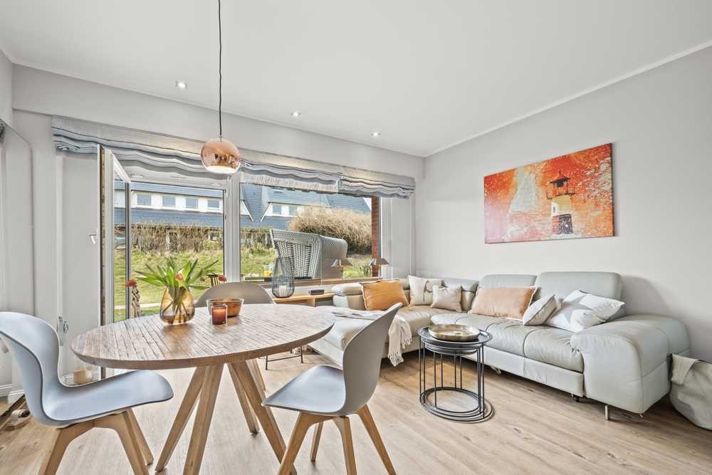 Diese hochwertig sanierte Wohnung überzeugt mit cleverer Raumaufteilung und erstklassiger Lage – direkt am Naturschutzgebiet „Rotes Kliff“. Die sonnige Terrasse bietet Meerblick und Sonne von morgens bis abends.