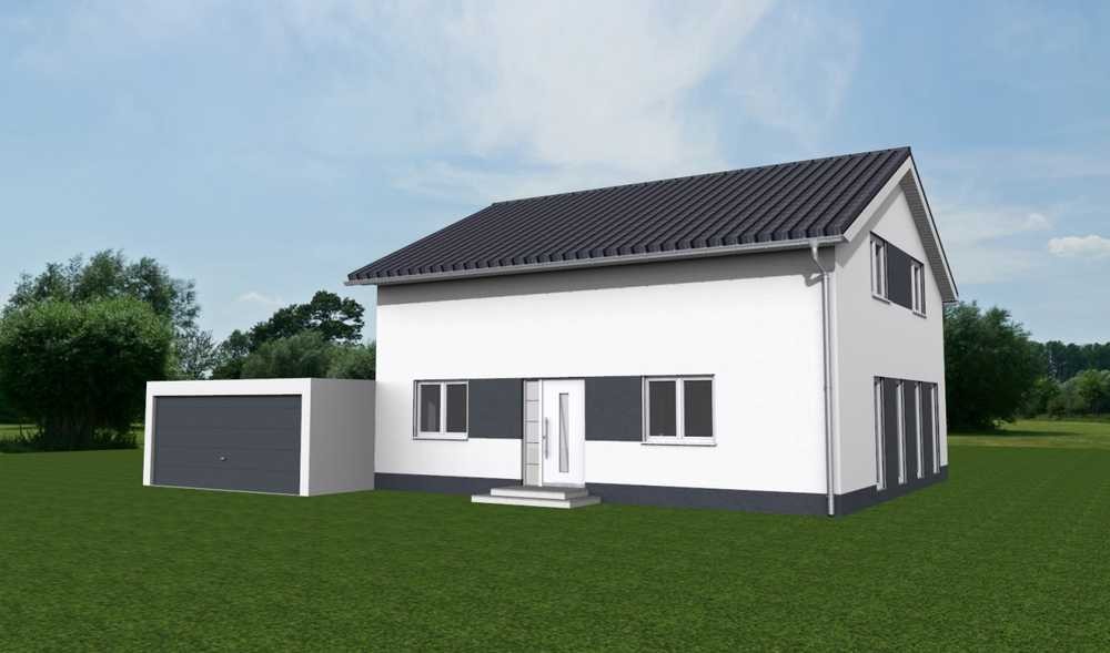 Ein klassisches modernes Einfamilienhaus mit einem eleganten Design, nachhaltige Bauweise und innovative Technologie. Die Architektur zeichnet sich durch klare Linien und eine harmonische Gestaltung aus.