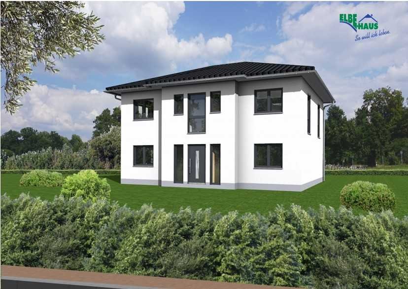 Ein klassisches modernes Einfamilienhaus mit einem eleganten Design, nachhaltige Bauweise und innovative Technologie. Die Architektur zeichnet sich durch klare Linien und eine harmonische Gestaltung aus.