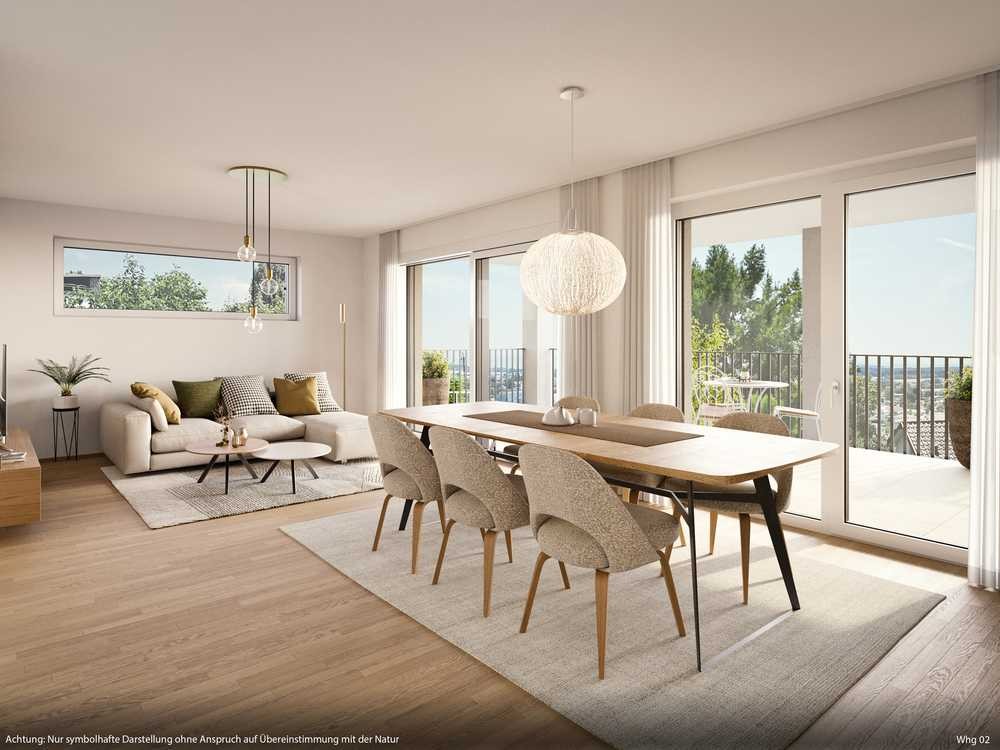 großzügiger Wohn-Essbereich mit Zugang zur ca. 25 m² Loggia und ca. 53 m² Garten