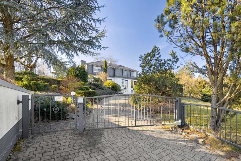 Damit aber noch lange nicht genug: Neben dem schönen Baustil und dem Wohnhaus als solches, darf auch der Außenbereich gebührend erwähnt werden. Zunächst sind die drei Garagen anzuführen, welche Ihnen beim Betreten des Grundstücks direkt auffallen werden. Die stattliche Einfahrt bis hinauf zum Haus und viel Grün drumherum wird Ihnen und Ihren Gästen imponieren. Vor dem Haus finden zwei weitere Autos ihren Stellplatz im Freien.