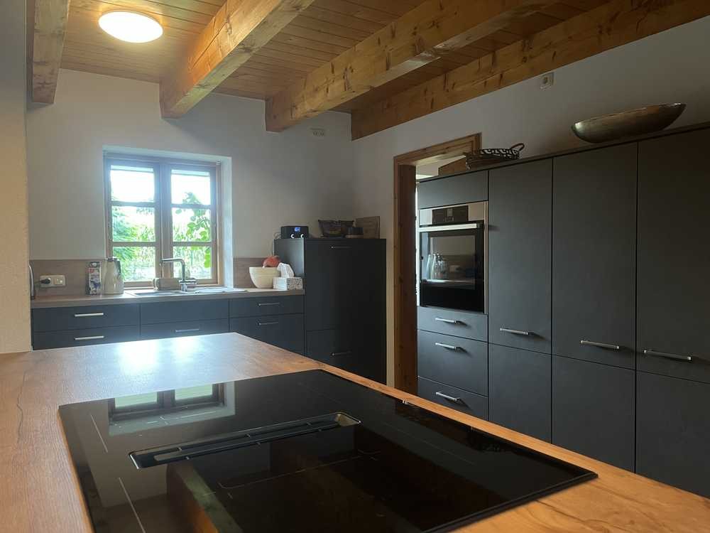 Ein wahrer Höhepunkt dieses Hauses ist zweifellos die hochwertige Einbauküche. Sie ist mit modernsten Geräten ausgestattet und erfüllt die Ansprüche selbst der anspruchsvollsten Hobbyköche. Hier können Sie kulinarische Meisterwerke zaubern und Ihre Familie sowie Freunde beeindrucken. Die offene Gestaltung der Küche ermöglicht es Ihnen, während des Kochens in Kontakt mit Ihren Liebsten zu bleiben und gemeinsame Mahlzeiten in einer einladenden Atmosphäre zu genießen. Farblcih passts sich die Küche perfekt an das Umfeld des Hauses an und verfügt somit über großen ästehtischen Stil.