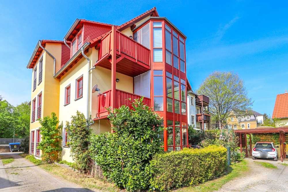 Die zum Verkauf stehende 4-Raum-Wohnung erstreckt sich über das komplette Dachgeschoss eines ca. im Jahre 1999 errichteten Mehrfamilienhauses. Das Haus versprüht durch seine individuellen Ausstattungsmerkmale wie z.B. der roten Fensterläden und Fenster sowie seiner ruhigen Lage am idyllischen Lockwitzbach ein ganz besonderes Flair. Im Haus befinden sich lediglich 4 Einheiten inkl. zweier Arztpraxen, wodurch es vor allem außerhalb der üblichen Arbeitszeiten sehr ruhig ist.