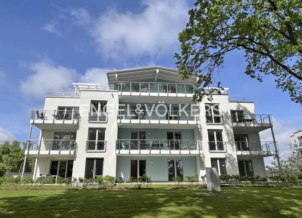 Über einen geräumigen Flur gelangen Sie in alle Räume Ihres Domizils. Herzstück ist ohne Zweifel der lichtdurchflute Wohnraum mit großzügiger Wohnlandschaft und einer offenen Einbauküche. Der nach Westen ausgerichtete, ca. 15 m² große Balkon, lädt beim Blick auf das Wasser zum Entspannen und Verweilen ein. Zwei geräumige Schlafzimmer und zwei identische Duschbäder runden dieses moderne Appartement ab. Zu den Annehmlichkeiten gehören die Fußbodenheizung, elektrische Jalousien, moderne Fußböden in Design-Vinyl und eine hochwertige Ausstattung, welche im Kaufpreis inbegriffen ist. Zur Wohnung gehören ein kleiner Abstellraum in der Wohnung und ein größerer außerhalb auf der Etage für z.B. Balkonmöbel und eigene Fahrräder.