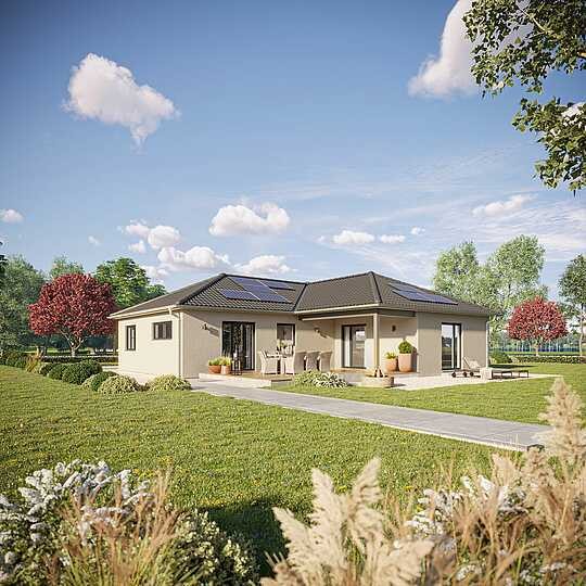 Der Bungalow ist im klassischen Winkelbungalow-Stil geplant.
