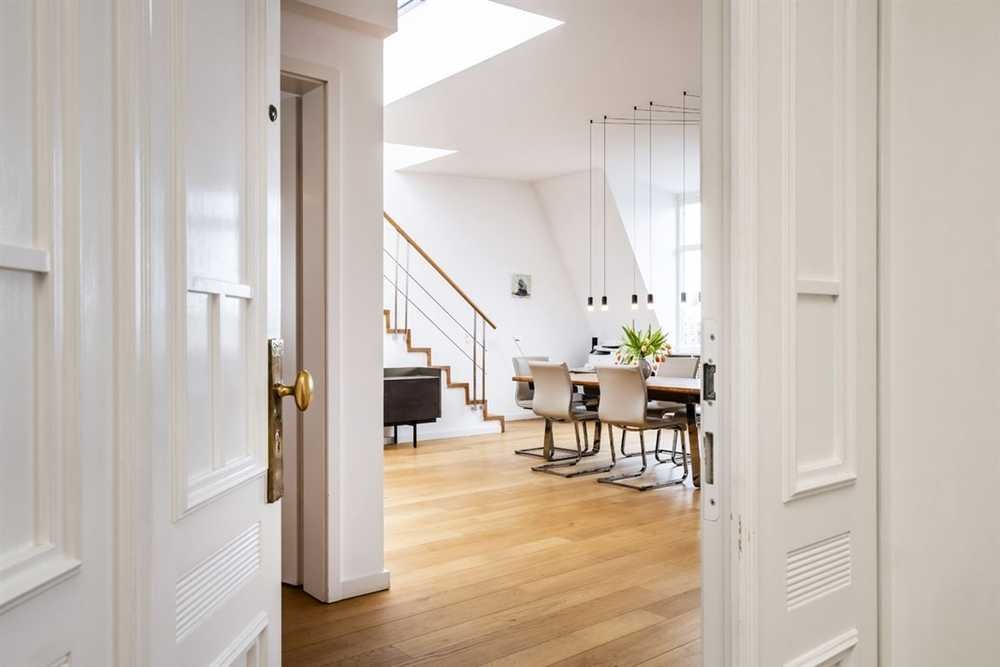 Die stilvolle und elegante Wohnung besticht schon im ersten Moment durch die außergewöhnliche Belichtung und Deckenhöhe in dem ca. 58qm großen, loftartigen Wohn- und Essbereich.
