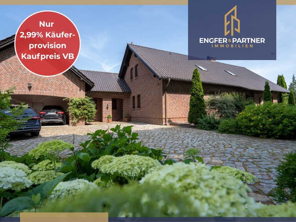 Umgeben von einer herrschaftlichen Baumallee, heißt Sie dieses liebevoll gestaltete und äußerst gepflegte parkähnliche Grundstück mit einer Fläche von ca. 5.065 m² als neue Bewohner willkommen. Eine aufwendig gepflasterte Einfahrt mit elektrischem Tor führt Sie direkt zu Ihrer Doppel-Garage nebst zwei Abstellräumen (ehem. Jagdkammer). Das im Jahr 2001 massiv errichtete und teilunterkellerte Landhaus besticht nicht nur durch seine hochwertige Bauweise, sondern insbesondere durch seine großzügige Wohnfläche mit ca. 247m². Das Erdgeschoss, mit einer Wohnfläche mit ca. 137 m², ist durchdacht in folgende Räume aufgeteilt: Im Eingangsbereich finden Sie das Gäste-WC und gelangen über den Flur in die Küche mit separater Speisekammer. Der Küchenbereich überzeugt durch seine großzügige Frühstücksterrasse mit Nord-Ost-Ausrichtung. Von der Küche aus haben Sie zudem Zugang zum großen Wohnzimmer mit Kamin und Essbereich. Ein unbeschreibliches Highlight im Wohnzimmer ist der Fernblick über das Grundstück und die angrenzenden Felder und Wälder! Die vollständig überdachte Terrasse (ca. 76 m² Grundfläche) schließt sich direkt an das Wohnzimmer an und bietet an heißen Sommertagen ausreichend Schatten. Das Schlafzimmer im Erdgeschoss verfügt über eine geräumige, begehbare Ankleide und grenzt an das große Vollbad mit Fenster. Ebenfalls führt Sie der Flur zum zweiten Gäste-WC und dem Hauswirtschaftsraum (HWR) mit Waschmaschinenanschluss und zusätzlicher Dusche. Vom HWR aus gelangen Sie zur Sauna Im Dachgeschoss erwartet Sie eine Wohnfläche von ca. 110 m², die sich auf ein Duschbad mit Fenster, eine große Diele und zwei Schlafzimmer verteilt, eines davon mit Balkon. Durch die großzügige Diele ist es mit wenig Aufwand möglich, im Dachgeschoss noch ein drittes Schlafzimmer zu schaffen.