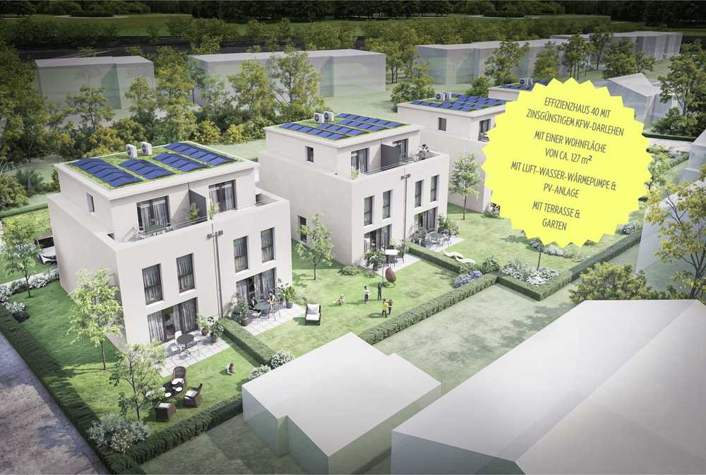 Die Häuser werden nach den Kriterien des GEG (Gebäudeenergiegesetz) von 2024 erstellt. Darüber hinaus werden die Häuser als Effizienzhaus 40 nach den Anforderungen der KfW-Bank als klimafreundliches Wohngebäude (KFWG) erstellt. Das sorgt für niedrige Energiekosten und ermöglicht zinsgünstige Förderkredite über die KfW-Bank.