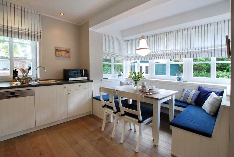 Gegenüber vom Kurpark liegt das Ensemble bestehend aus zwei Gebäuden. Vorn steht das inseltypischen Haus (Bj. 1927, saniert 2012) mit drei geschickt aufgeteilten und geschmackvoll sowie gemütlich eingerichteten Ferienwohnungen, die jeweils eine eigene Terrasse haben. Jede Ferienwohnung hat zwei Schlafzimmer, ein Badezimmer, eine Wohnküche mit Küchenzeile, Essplatz und Sofaecke.