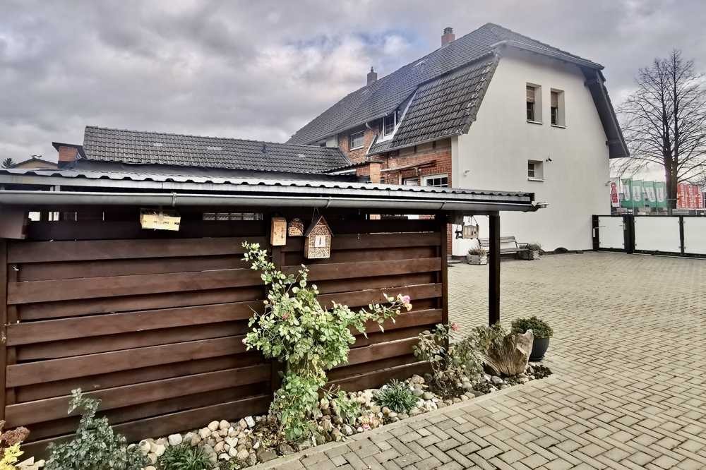 Der liebevoll angelegte Garten mit ca. 792 m² ist mit einem elektrischen Tor und einer Kameraüberwachung ausgestattet und bietet auch ausreichend Platz für Fahrzeuge sowie Hobbys in der Garage, dem Carport und dem Schuppen.