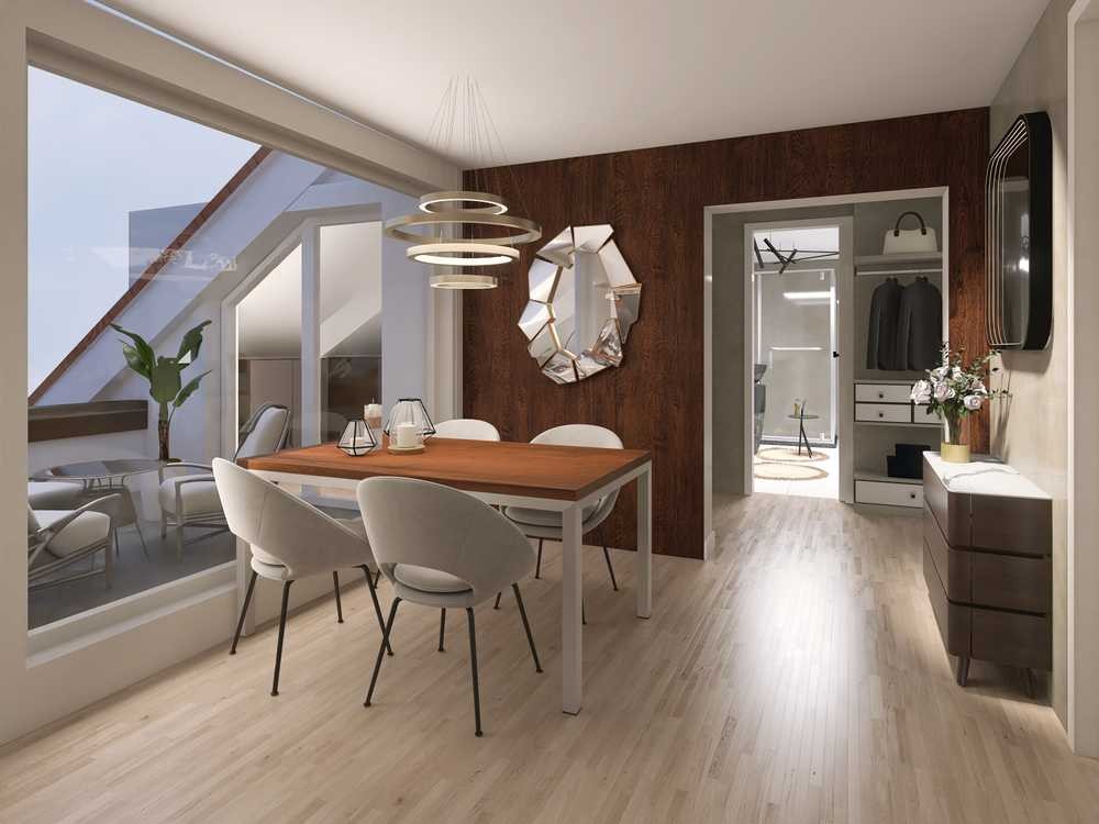 Der großzügige Wohn- und Essbereich ist das Herz dieser 111 m² großen Dachgeschosswohnung. Lichtdurchflutet und offen gestaltet, gelangen Sie von hier aus direkt auf die große Terrasse. Perfekt, um den Tag mit einer Tasse Kaffee zu begrüßen oder den Abend entspannt ausklingen zu lassen. Und für die kurze Frischluftpause nutzen Sie einfach den kleinen Balkon.