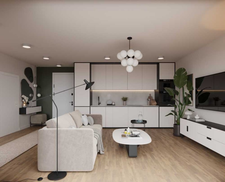 Diese großzügig geschnittene Wohnung bietet das, was Familien brauchen: drei Schlafzimmer, zwei Bäder, ein weitläufiger Wohnbereich mit offener Küche sowie ein direkter Zugang zur privaten Außenfläche. Hier lebt man mit Raum, Struktur – und Stil.
