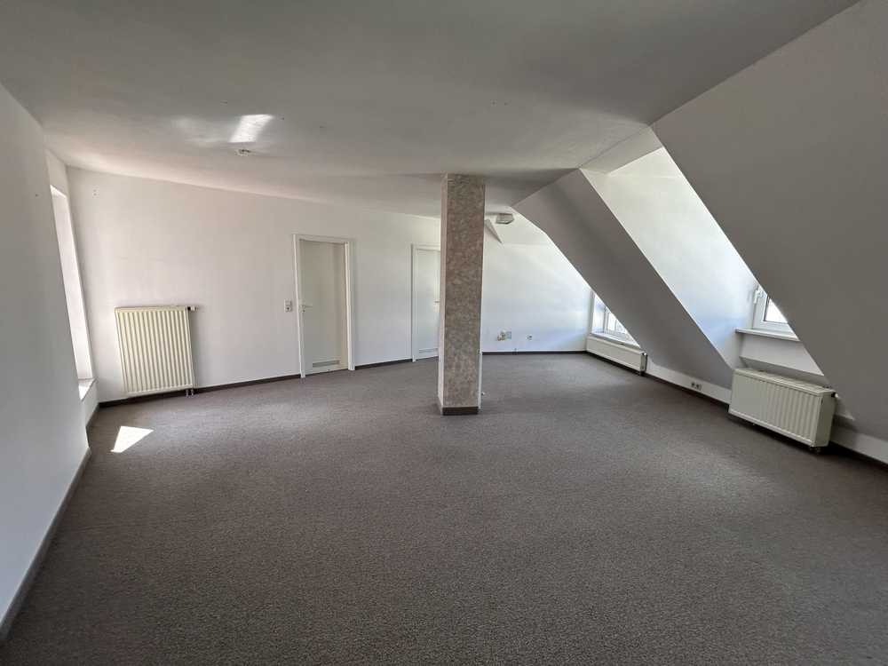 Diese charmante Gewerbeeinheit im Dachgeschoss eines gepflegten Wohn- und Geschäftshauses bietet nicht nur großzügige Büroflächen, sondern auch ein beeindruckendes Potenzial zur Umnutzung als attraktive Wohnung. Auf einer Gesamtfläche von ca. 105,60 m² stehen derzeit zwei große, lichtdurchflutete Büroräume, ein weiterer kleinerer Raum, eine Teeküche sowie ein separates WC zur Verfügung. Der Grundriss ist offen und flexibel gestaltet – ideale Voraussetzungen für eine individuelle Neugestaltung als Wohneinheit.