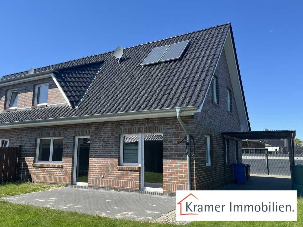 Entdecken Sie diese charmante Doppelhaushälfte in Apen, gelegen in einer angenehmen Wohnsiedlung am Ende einer Sackgasse. Das pflegeleicht angelegte Grundstück hat eine Größe von 418 m² und bietet Ihnen sowie Ihrer Familie ausreichend Platz zur freien Entfaltung. Die Immobilie verfügt über eine Wohnfläche von ca. 120,31 m² sowie eine Nutzfläche von ca. 21 m².
