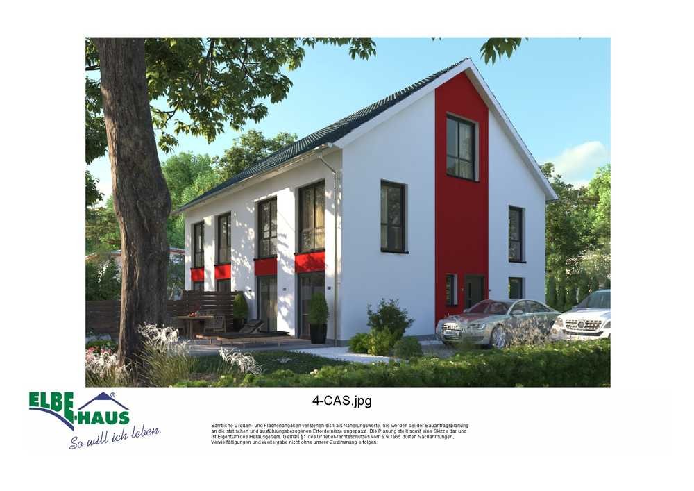 Dieses innovative Elbe-Haus® wird in massiver Bauweise von qualifiziertem Fachpersonal errichtet. Wir planen und projektieren nach Ihren Vorstellungen und Wünschen und somit ist wirklich jedes Haus einzigartig. Beachten Sie bitte, dass das abgebildete Haus lediglich ein Bebauungsbeispiel ist. Das Grundstück kann unter Berücksichtigung der örtlichen Bauvorschriften mit Ihrem Wunschhaus von Elbe-Haus® errichtet werden.