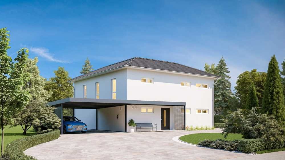 Die Architektur des Hauses ist im klassischen Stadtvillenstil gehalten. Der Grundriss ist klug durchdacht. Im Erdgeschoss befinden sich ein offen gestalteter Wohn-/Ess- und Kochbereich mit einem praktischen Haustechnik-/Hauswirtschaftsraum, direkt neben der Küche. Ein Zusatzraum, der als Homeoffice, Gäste-, Schlaf- oder Hobbyraum genutzt werden kann, bietet zusätzlichen Komfort. Die Diele mit dem Treppenhaus ist mittig angeordnet, neben dem Eingangsbereich ist eine Garderobennische und ein Gäste/WC eingeplant. Das Gäste-WC kann optional auch als Duschbad ausgebaut werden. Im Obergeschoss des Hausentwurfes befinden sich zwei nahezu gleich große Kinderzimmer, ein geräumiges Familienbad und der Elternschlafbereich mit Ankleide und direktem Zugang zum Bad.
