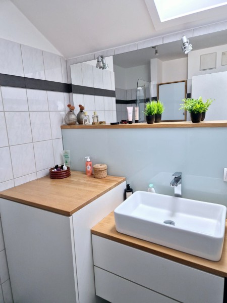 Ein neuwertiges, elektrisch gesteuertes Sonnenschutzsystem (Investition ca. 10.000 €) hält die Wärme zuverlässig draußen und sorgt auch an heißen Tagen für ein angenehmes Wohnklima. Drei neue Dachfenster erhöhen zusätzlich den Wohnkomfort. Das Angebot wird durch eine separate Küche, ein Tageslichtbad mit Wanne, ein Gäste-WC sowie einen praktischen Abstellraum mit Einbauschrank abgerundet. Die Einbauküche ist im Preis enthalten.