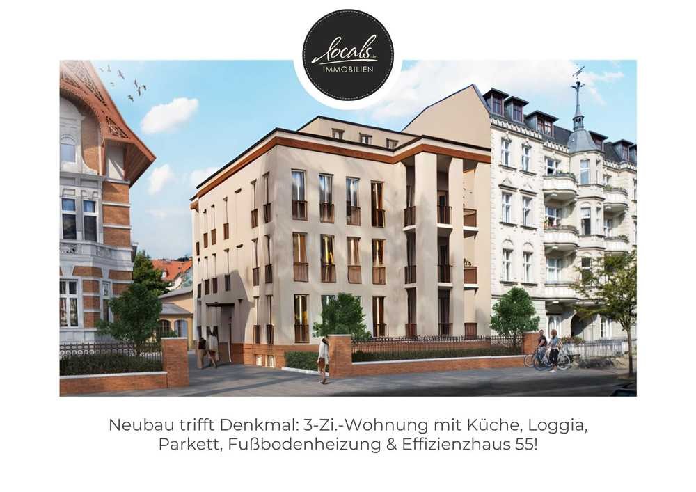 Neubau trifft Denkmal: 3-Zi.-Wohnung mit Küche, Loggia, Parkett, Fußbodenheizung & Effizienzhaus 55!