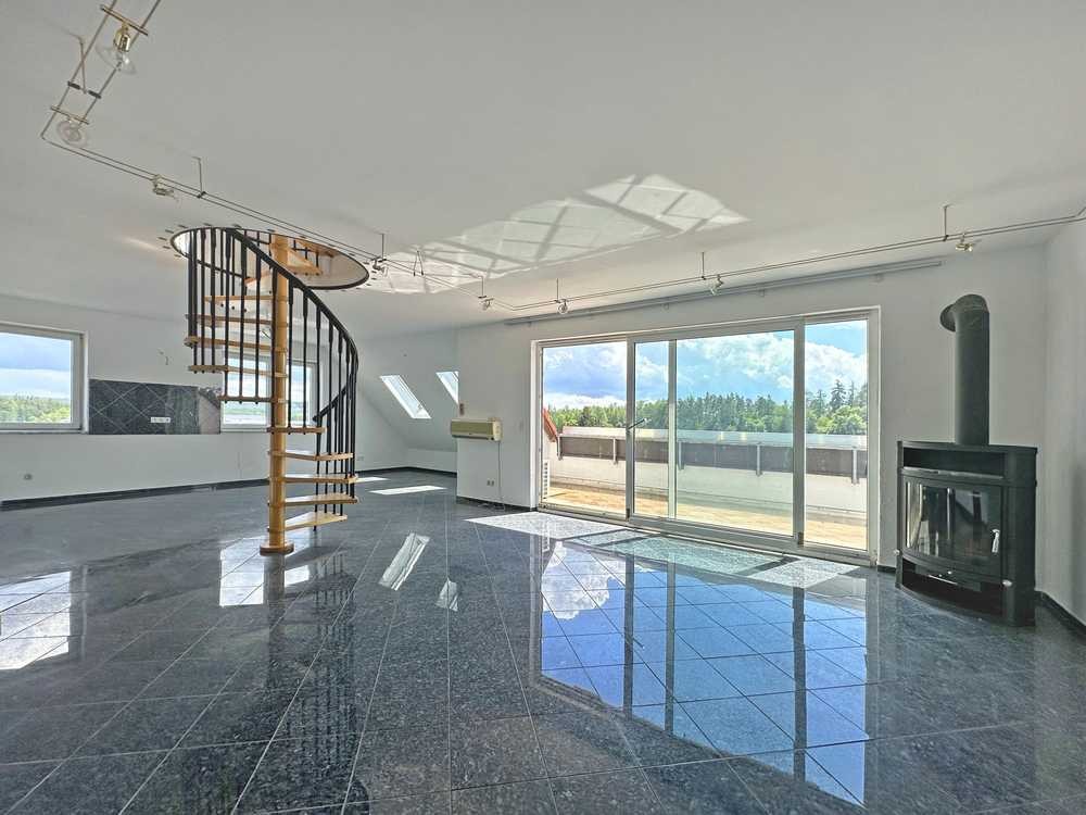 Die rund 113 m² große Wohnung erstreckt sich über zwei Ebenen im Stil eines Lofts und verbindet offene Raumkonzepte mit wohnlichem Komfort. Im unteren Geschoss befindet sich der großzügige Wohnbereich mit einem modernen offenen Küchenkonzept, das optional eine Kochinsel aufnehmen kann. Ein stilvoll integrierter Essplatz sowie ein heller, luftiger Wohnbereich mit Holzofen und Klimaanlage schaffen eine einladende Atmosphäre. Der Holzofen mit Sichtscheibe sorgt für behagliche Wärme im gesamten Wohnraum. Eine praktische Garderobe, eine Speise- bzw. Abstellkammer sowie ein granitgefliestes Badezimmer mit Whirlpool und Regendusche runden das Raumangebot auf dieser Ebene ab. Das Elternschlafzimmer bietet komfortablen Rückzugsraum. Der ca. 12 m² große Südbalkon gewährt einen weiten Blick bis ins Grüne.
