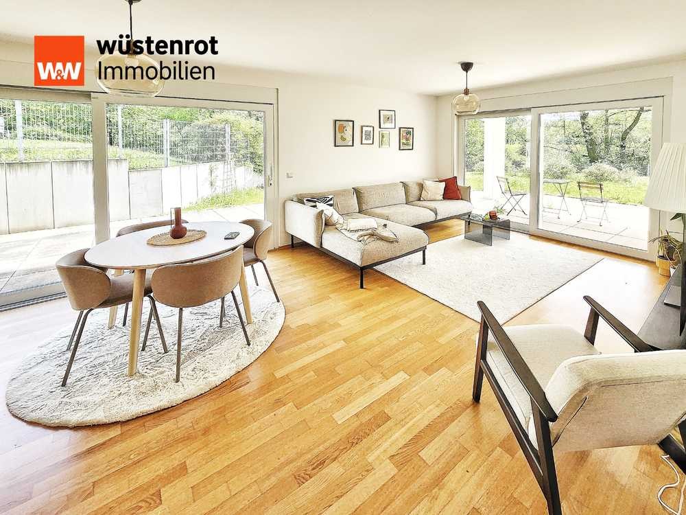 Beim Betreten der Wohnung werden Sie von einem weitläufigen Flur empfangen, der nahtlos in den offenen Wohn- und Essbereich übergeht. Die großen Fenster lassen viel Tageslicht herein und bieten einen herrlichen Blick in den eigenen Garten, den Sie über die gemütliche Terrasse erreichen können. Hier können Sie entspannte Stunden im Freien genießen.