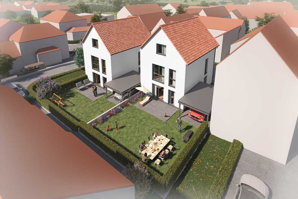 In Dackenheim errichten wir zwei Einfamilienhäuser auf real geteilten Grundstücken in optimaler Süd-West-Ausrichtung.