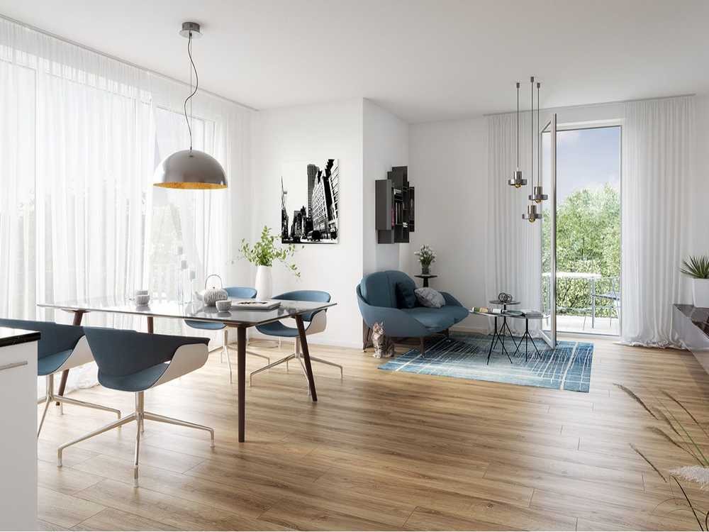 Das exklusive Neubauprojekt "Grüner Winkel Reinickendorf" entsteht im attraktiven Nordwesten Berlins und umfasst 54 hochwertige Eigentumswohnungen. Die eleganten Wohngebäude mit ihrer zeitlosen Architektur fügen sich harmonisch in die grüne Umgebung ein. Besonders beeindruckend sind die großzügigen Raumhöhen von über 2,70 m und die bodentiefen Fenster, die für lichtdurchflutete Wohnräume sorgen. Das Projekt überzeugt mit Energieeffizienzklasse A und einem nachhaltigen Nahwärme-Blockheizkraftwerk. Jede Wohneinheit verfügt über private Freiflächen in Form von Terrassen, Balkonen oder Dachterrassen mit Blick ins Grüne.
