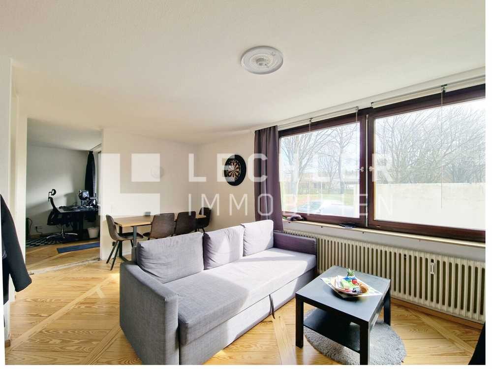 Große Fenster sorgen für ein freundliches Wohnambiente. Das Schlafzimmer bietet Zugang auf den nach Osten ausgerichteten Balkon. Darüber hinaus verfügt die Wohnung über ein gepflegtes Bad mit Badewanne und WC sowie eine funktionale Einbauküche mit Elektrogeräten. Ein Außenstellplatz, ein Kellerraum und eine gemeinschaftliche Waschküche runden das Angebot ab.