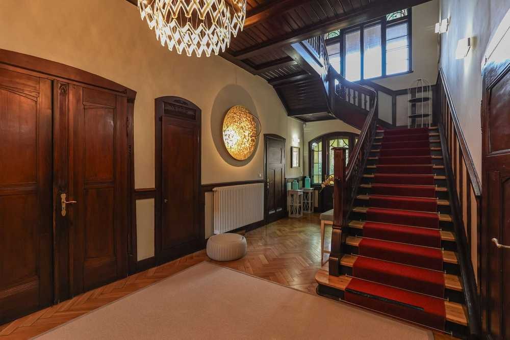 Mit einer Wohnfläche von rund 450 m² und einem weitläufigen Grundstück bietet die Villa ein ideales Umfeld für anspruchsvolles, familienfreundliches Wohnen. Zwölf großzügige Zimmer, darunter sieben Schlafzimmer und fünf stilvolle Badezimmer, schaffen Raum für vielfältige Lebenskonzepte. Der lichtdurchflutete Wohn- und Essbereich bildet das Herzstück des Hauses – ein Ort zum Zusammenkommen, Genießen und Verweilen.