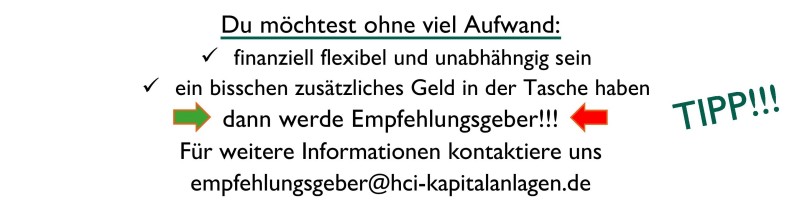 TIPP!! Erfolgreiche Weiterempfehlungen werden lukrativ honoriert!