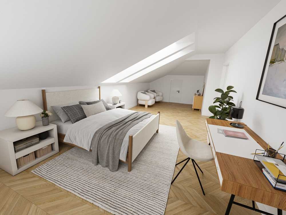Die Dachgeschosswohnung wurde im Jahr 2025 neu errichtet und erstrahlt somit als helle, geräumige Neubauwohnung über den Dächern der Stadt.