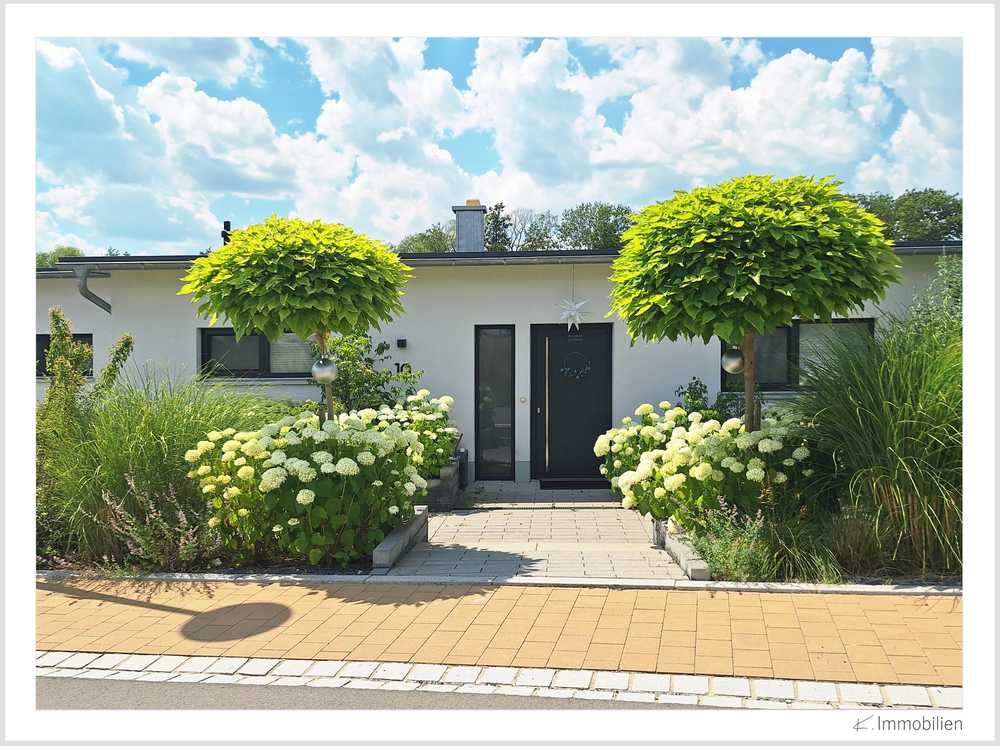 Der 2020 neu errichtete Bungalow mit einem offenen,, hellen Grundriss im skandinavischen Design, vermittelt bereits beim Eintreten eine freundliche und einladende Atmosphäre. Die samtschwarze Küche setzt einen modernen Akzent, während die zwei Bäder für zusätzlichen Komfort sorgen. Der Garten mit Lounge und überdachter Terrasse bieten einen schönen Außenbereich zum Entspannen und für gesellige Stunden. Die angrenzende Auenwiese schafft eine ruhige Umgebung mit schöner Aussicht auf die Wörnitz, ruhig und naturnah, perfekt für Naturliebhaber. Das Carport mit bietet Platz für allerlei Alltagsgegenstände. Im Kaufpreis sind einige Ausstattungs- und Einrichtungsgegenstände enthalten.